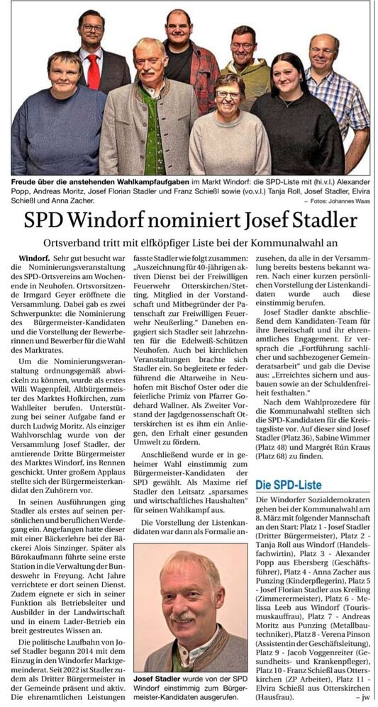 Josef Stadler wurde von der SPD einstimmig zum Bürgermeister-Kandidaten ausgerufen.